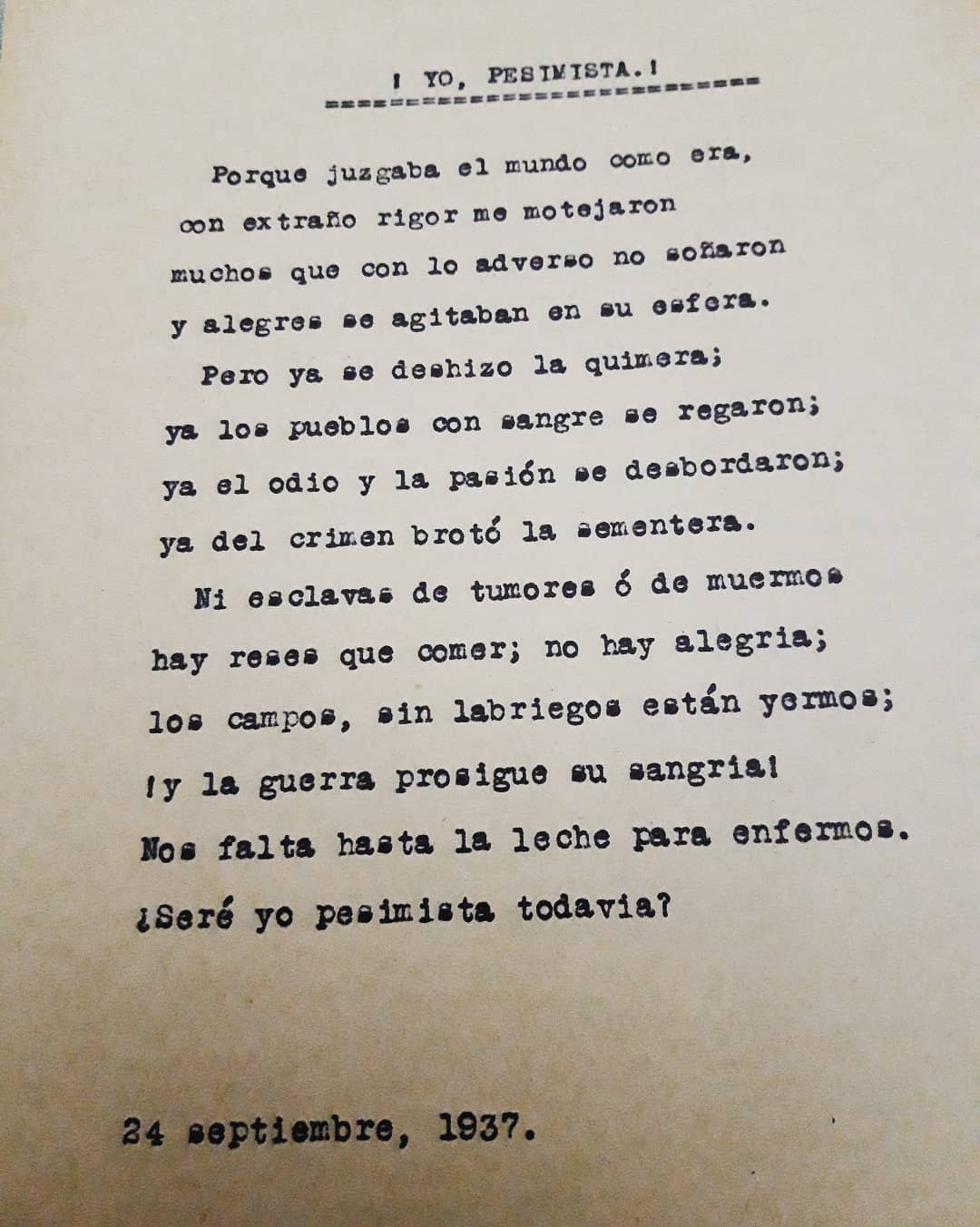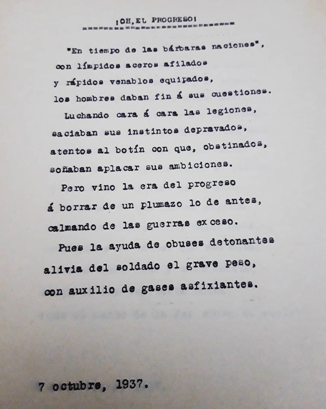 En sus versos puede deducirse un afán de pronunciarse contra la guerra incansablemente y también contra la polaridad de aquellos momentos. Para ello les dejamos algunos de los poemas que están dispersos en el Legajo número 16 y que podrán ser consultados por ustedes en esta misma publicación, y que dan fe de lo manifestado anteriormente.