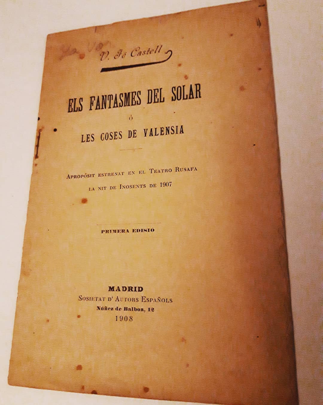 La Librería Monos de San Telmo ha adquirido el archivo personal del escritor Aurelio Yanguas, conocido como “Aguaíyo”. Fue un escritor de finales del XIX e inicios del XX que se desempeñó como cronista taurino para el Diario de Valencia. Es una figura prácticamente desconocida dentro del mundo literario a pesar de la publicación de cuatro libros entre los que destacan «La génesis del Cantar» y «Celajes».
